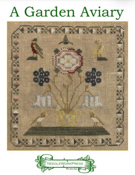 Pre-Order! This item will be released during the Nashville Wholesale Market and will ship by mid to late March. Please order those items you need sooner separately from this item. A Garden Aviary is the title of this cross stitch pattern from Needle WorkPress.