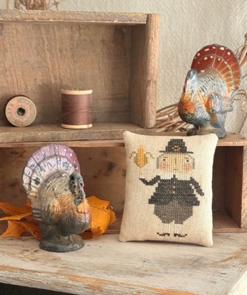 John is the title of this cross stitch pattern from Notforgotten Farms' Littles series that is stitched with DMC threads. He is ready for Thanksgiving with that ear of corn! And here is a link to order his companion, Priscilla.