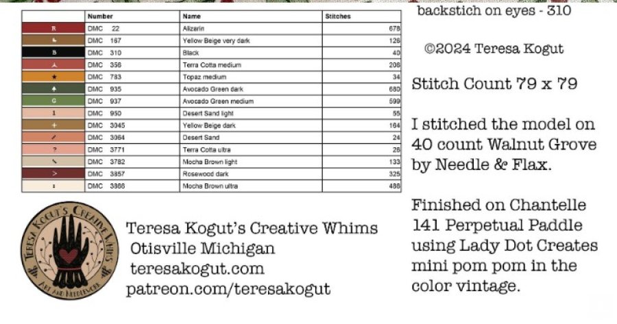 Pre-Order! Please order items you need sooner separately from this item as your overall order will not ship until this item is in stock. Santa Wreath Ornament is the title of this cross stitch pattern from Teresa Kogut.