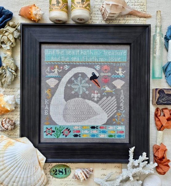 Pre-Order! This item will be released during the Nashville Wholesale Market and will ship by mid to late March. Please order those items you need sooner separaely from this item. The Sea Hath My Love is the title of this cross stitch pattern from Kathy Barrick that can be stitched with DMC threads.
